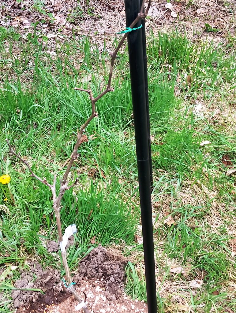 ポイントは「しっかり固定すること」。ブドウは成長すると意外と重くなるため、強度が重要です。